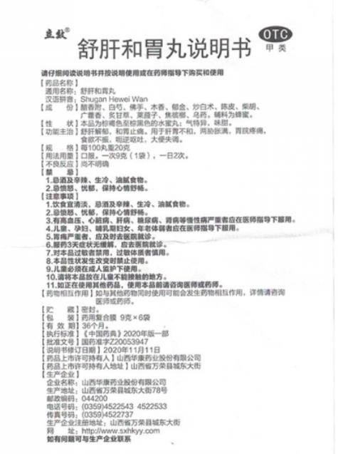 - 本頁(yè)面信息僅供參考,請(qǐng)以產(chǎn)品實(shí)際附帶說(shuō)明書為準(zhǔn)。 山西華康 舒肝和胃丸 說(shuō)明書文字版 【藥品名稱】通用名稱:舒肝和胃丸