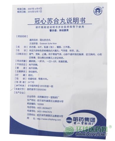 - 本頁面信息僅供參考,請以產(chǎn)品實際附帶說明書為準。 哈藥世一堂 冠心蘇合丸 說明書圖片版 哈藥世一堂 冠心蘇合丸 說明書文字版