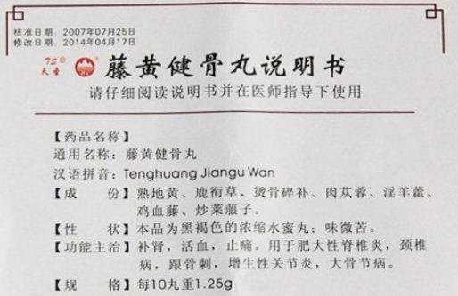 - 本頁(yè)面信息僅供參考,請(qǐng)以產(chǎn)品實(shí)際附帶說(shuō)明書(shū)為準(zhǔn)。 天圣制藥 藤黃健骨丸 說(shuō)明書(shū)圖片版 天圣制藥 藤黃健骨丸 說(shuō)明書(shū)文字版