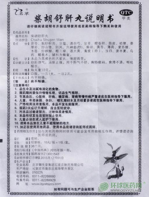 【藥品名稱】通用名稱:柴胡舒肝丸