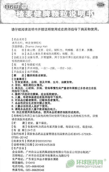 - 白云山楂麥健脾顆粒說明書