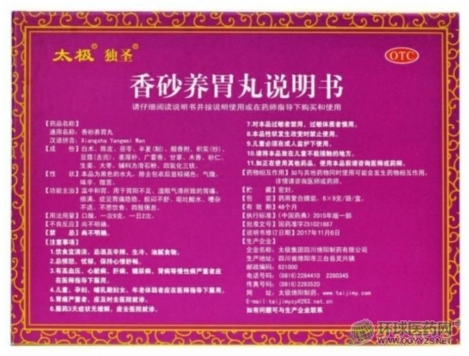 - 本頁面信息僅供參考,請以產(chǎn)品實(shí)際附帶說明書為準(zhǔn)。 太極 香砂養(yǎng)胃丸 說明書文字版 【藥品名稱】香砂養(yǎng)胃丸(濃縮丸) 【批準(zhǔn)文號