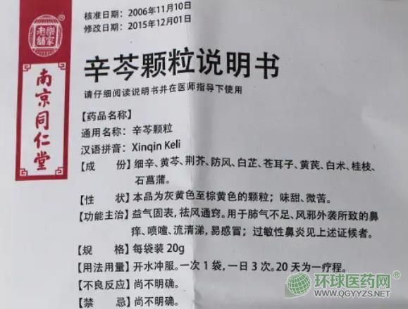 - 本頁(yè)面信息僅供參考,請(qǐng)以產(chǎn)品實(shí)際附帶說(shuō)明書(shū)為準(zhǔn)。 辛芩顆粒 南京同仁堂說(shuō)明書(shū) 圖片版(2015年版) 辛芩顆粒南京同仁堂