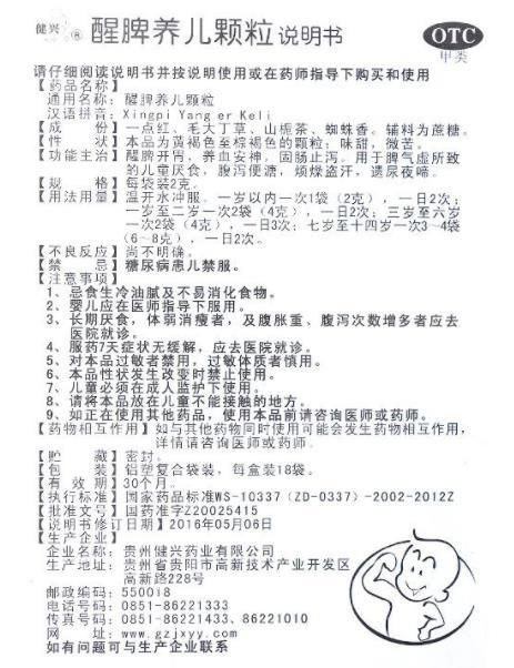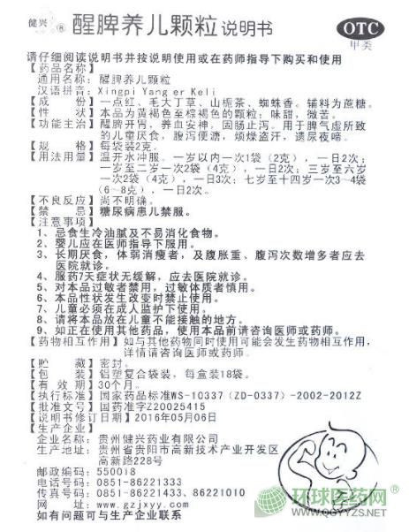 - 本頁面信息僅供參考,請以產(chǎn)品實際附帶說明書為準。 貴州健興 醒脾養(yǎng)兒顆粒 說明書文字版 醒脾養(yǎng)兒顆粒說明書 請仔細閱讀說