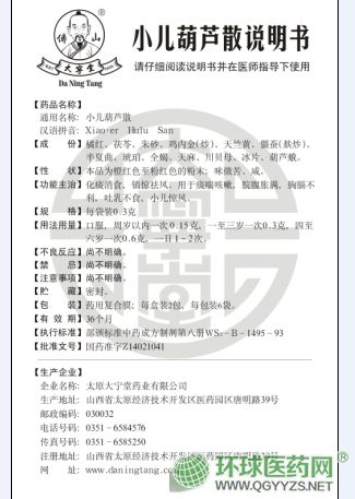 【用法用量】口服,周歲以內(nèi)一次 0.15g,一至三歲一次0.3g,四至六歲一次0.6g,一日 1~2 次。
