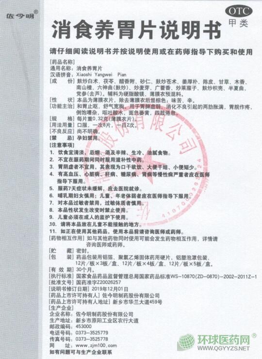 - 本頁面信息僅供參考,請(qǐng)以產(chǎn)品實(shí)際附帶說明書為準(zhǔn)。 佐今明 消食養(yǎng)胃片 說明書文字版 [藥品名稱]通用名稱:消食養(yǎng)胃片 漢語拼音:X