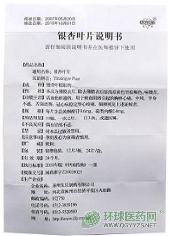 - 本頁(yè)面信息僅供參考,請(qǐng)以產(chǎn)品實(shí)際附帶說(shuō)明書為準(zhǔn)。 東樂(lè)制藥 銀杏葉片 說(shuō)明書文字版 【藥品名稱】 通用名稱:銀杏葉片 漢語(yǔ)拼