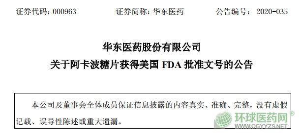 - 華東醫(yī)藥阿卡波糖片獲得美國 FDA 批準(zhǔn)文