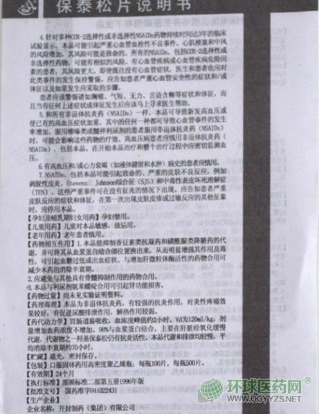 - 本頁面信息僅供參考,請以產(chǎn)品實際附帶說明書為準(zhǔn)。 開封制藥保泰松片說明書文字版 【藥品名稱】通用名稱:保泰松片 英文名稱:P