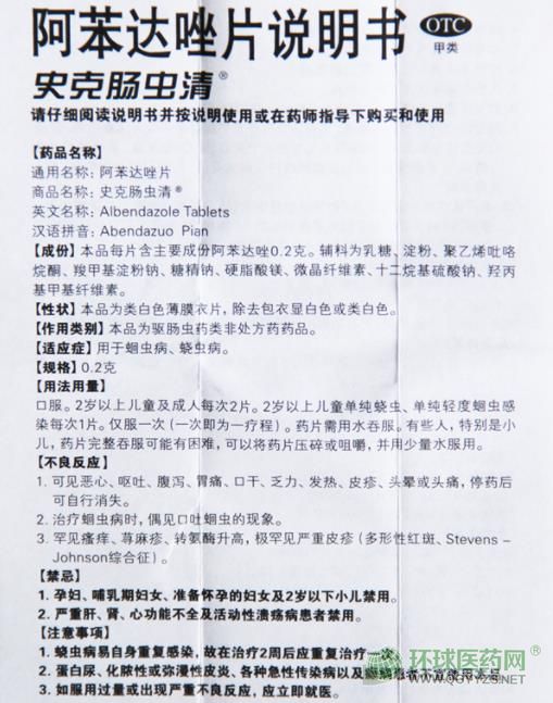 通用名稱:阿苯達(dá)唑片