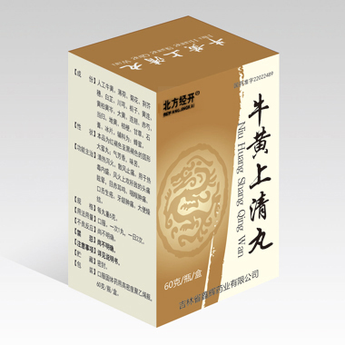 人工牛黃、薄荷、菊花、荊芥穗、白芷、川芎、梔子、黃連、黃柏、黃芩、大黃、連翹、赤芍、當(dāng)歸、地黃、桔梗、甘草、石膏、冰片。