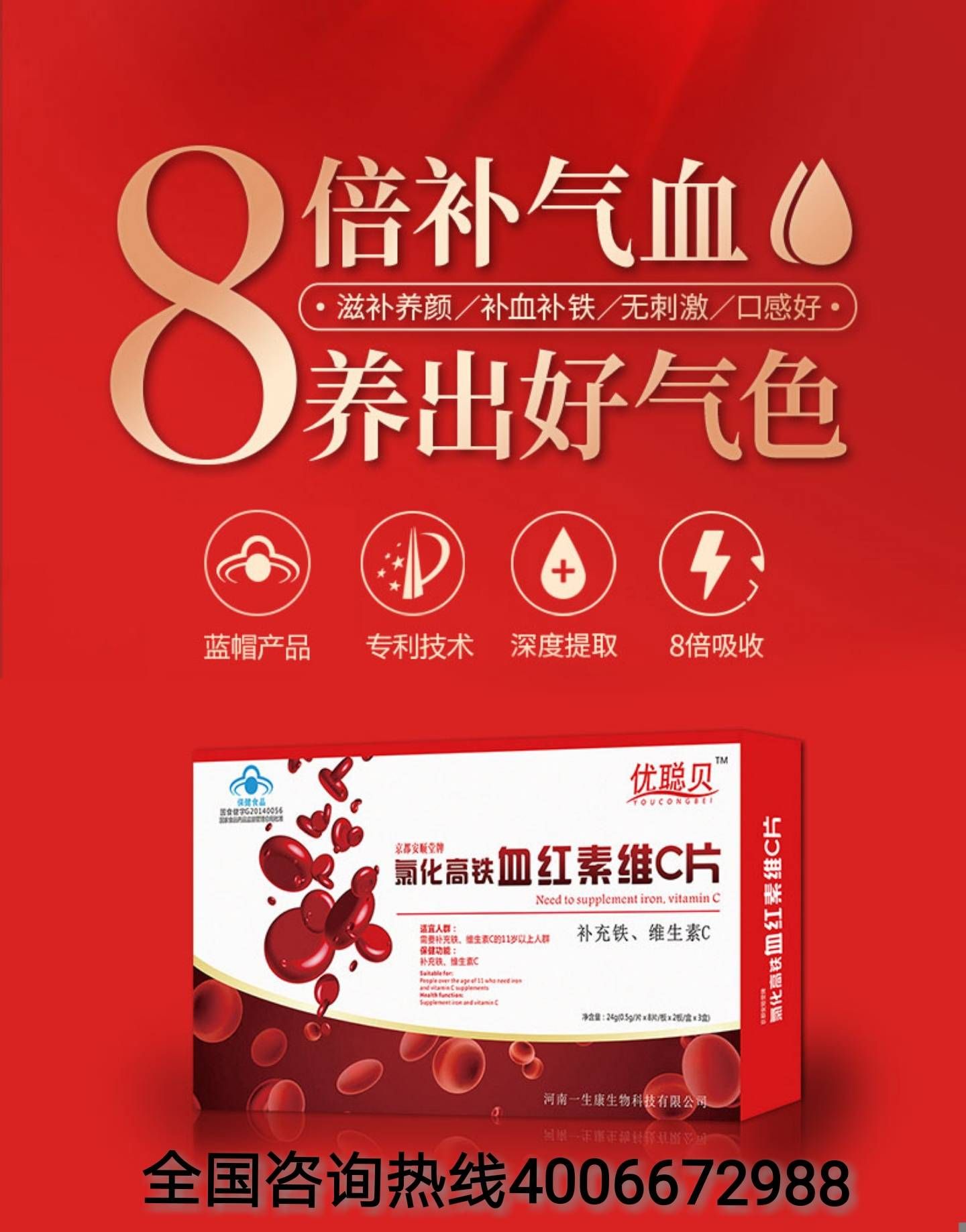 優(yōu)聰貝氯化高鐵血紅素維C片貧血首選