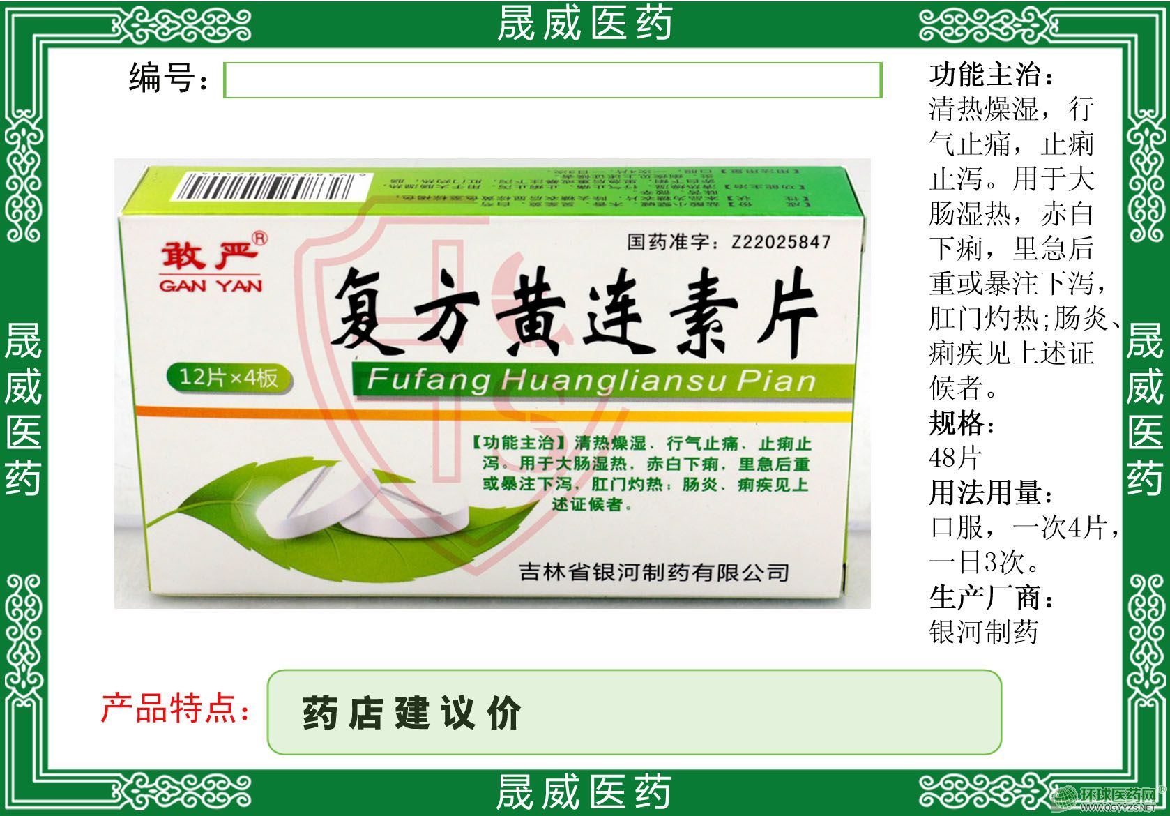 - 產(chǎn)品:復(fù)方黃連素片