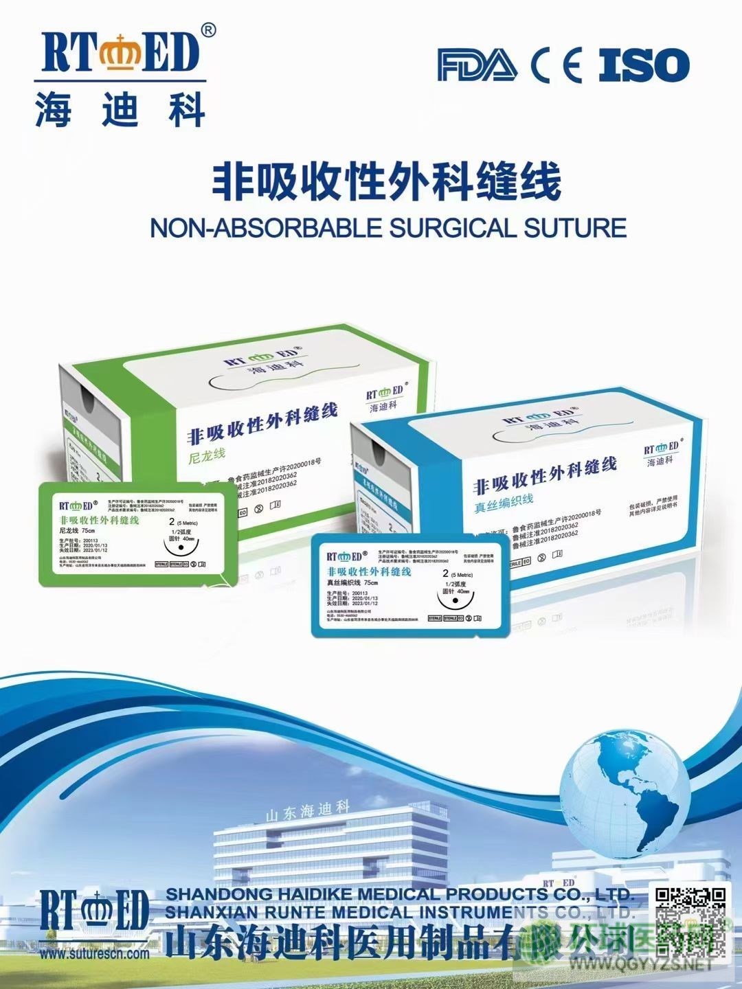 - 產品:可吸收縫合線PGLA,非吸收:尼龍、絲線、聚丙烯、滌綸