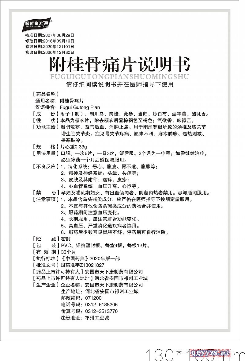 | 通用名稱 | 附桂骨痛片 |