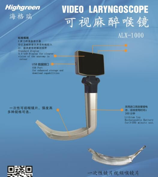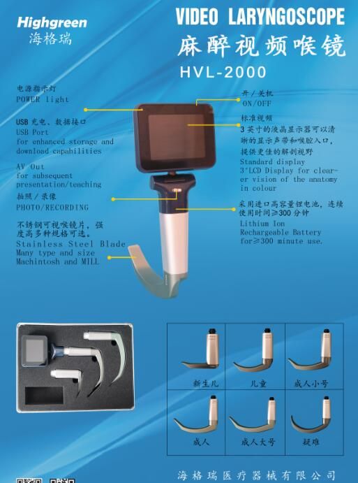 | 補充說明 | HVL-2000可視喉鏡 海格瑞可視喉鏡采用專業(yè)視頻成像及專利弧度氣管導(dǎo)槽技術(shù),使不具備氣管插管經(jīng)驗的廣大醫(yī)生、急救人員、戰(zhàn)場救護人員,在該設(shè)備的輔助標示下實現(xiàn)快速、準確的氣管插管,為危急時刻挽救病人生命。它特別適合醫(yī)院全麻醉手術(shù)病人插管、急診、重癥監(jiān)護(院內(nèi)急診、ICU、CCU、院前急診、救護車)、野外救援、戰(zhàn)場救治、教學(xué)示范使用的輔助設(shè)備。 HVL-2000電子視頻喉鏡獨特優(yōu)勢: ◆獨特設(shè)計的鏡片角度。 ◆具有高效的防霧功能。 ◆可調(diào)節(jié)3寸液晶顯示器可前后120°度旋轉(zhuǎn),方便臨床操作和教學(xué)。 ◆整機防水設(shè)計方便拆卸和消毒 ◆獨有視頻輸出接口,拍照,錄像功能 ◆內(nèi)置式電源采用鋰電池,適用**操作場合, ◆多種窺視片型號可選擇,重復(fù)使用或一次性使用,防止交叉感染。 ◆快速實現(xiàn)多體位插管 ◆操作容易,無需特殊培訓(xùn) ◆方便攜帶和臨床操作輔助氣管插管 |