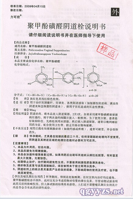| 通用名稱 | 聚甲酚磺醛陰道栓 |