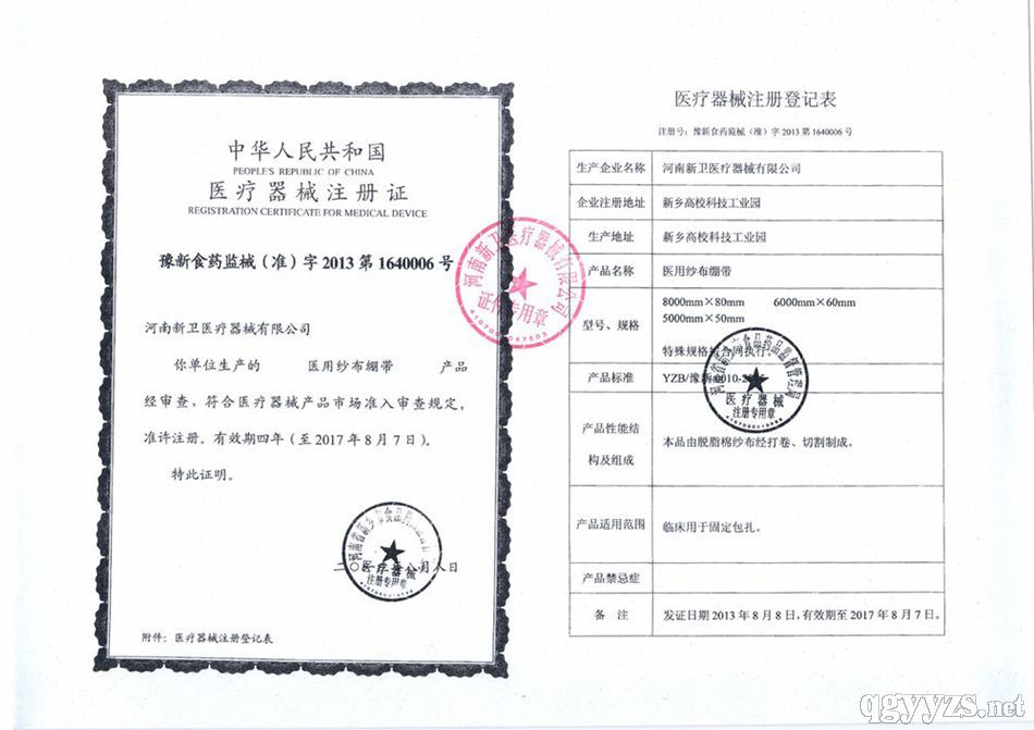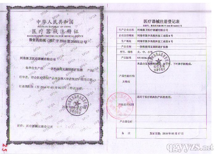 批準文號: 豫食藥監(jiān)械(準)字2012第2150080號 【驗證真?zhèn)?/a>】
