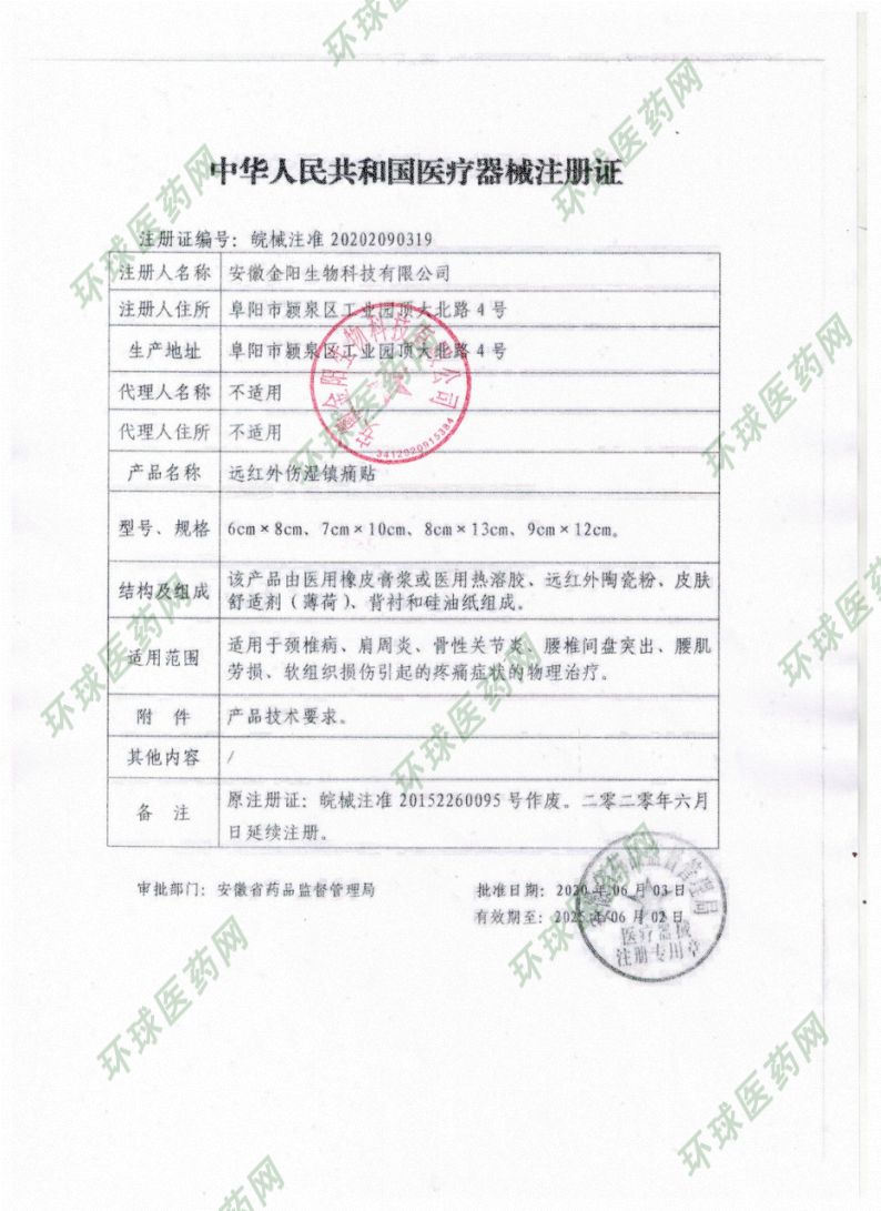 | 補(bǔ)充說明 | 遠(yuǎn)紅外傷濕鎮(zhèn)痛貼由醫(yī)用橡皮膏膠漿或醫(yī)用熱熔膠、薄荷、遠(yuǎn)紅外陶瓷粉、背襯及 硅油紙組成。遠(yuǎn)紅外陶瓷粉能夠輻射遠(yuǎn)紅外線被人體皮膚吸收產(chǎn)生熱能,從而達(dá)到 改善微循環(huán),增強(qiáng)肌體細(xì)胞活力及代謝等作用。 |