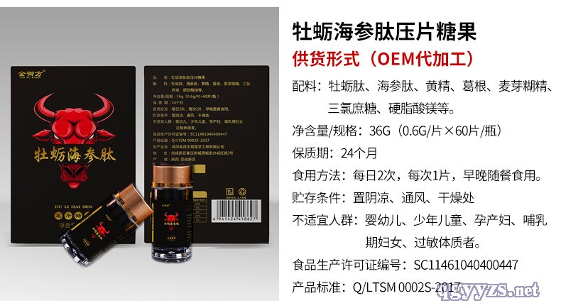 產(chǎn)品名稱: 5千瓶起定做片劑盒裝糖果牡蠣海參肽壓片糖果OEM貼