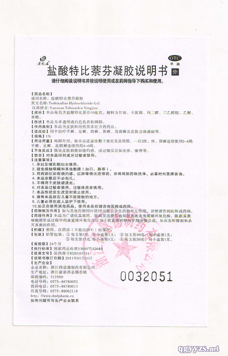 產(chǎn)品名稱: 鹽酸特比萘芬凝膠