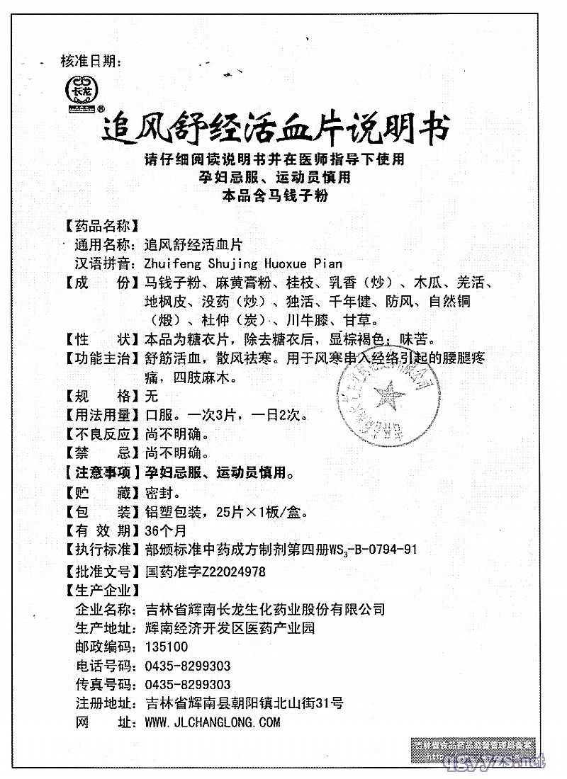 | 通用名稱 | 追風舒經活血片 |