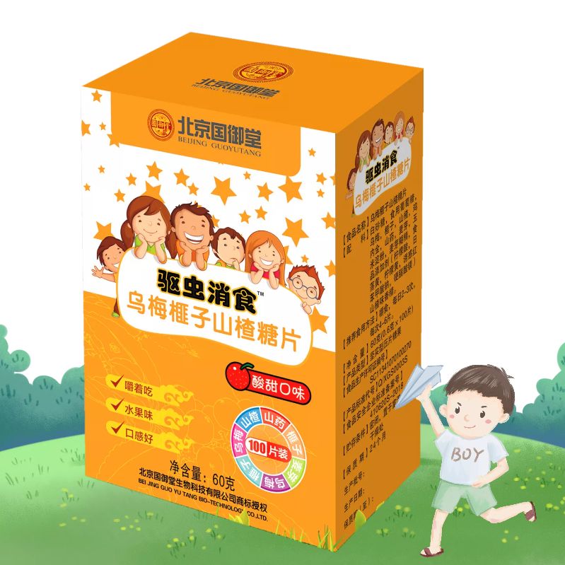 | 補(bǔ)充說(shuō)明 | 成份:烏梅、榧子、山楂、等 凈含量:50克(0.5克*100片) 使用方法:一次4-6片,一日3-4次 產(chǎn)品類型:堅(jiān)實(shí)型壓片糖果制品 注意事項(xiàng):本品不能代替藥物 貯藏方法:防潮,置陰涼干燥處 保質(zhì)期:二年 |
