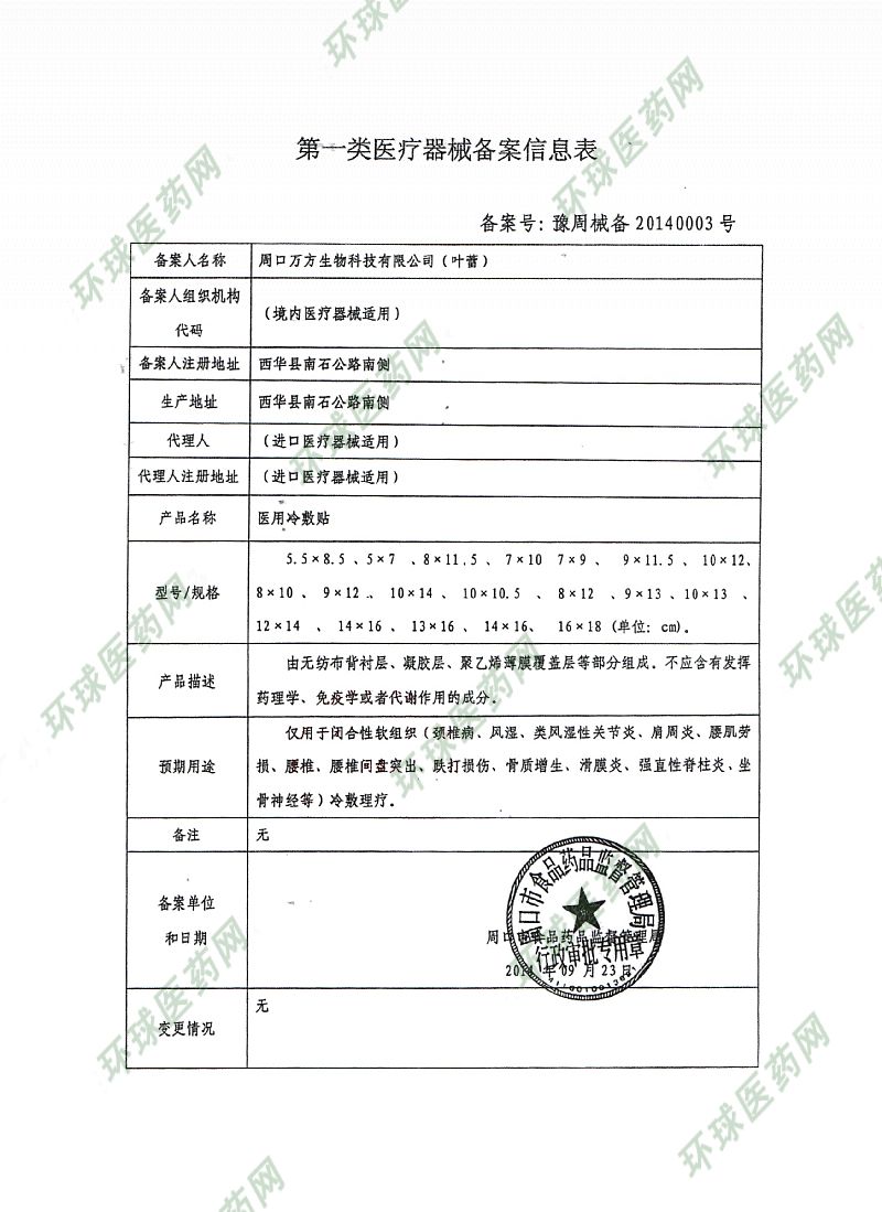 批準(zhǔn)文號: 豫周械備20140003號 【驗證真?zhèn)?/a>】