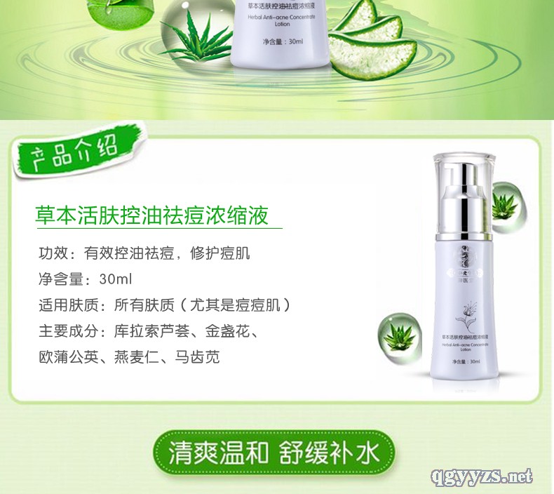 | 產(chǎn)品名稱 | 草本活膚控油祛痘濃縮液 |