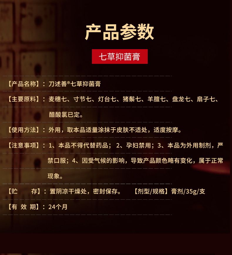 | 產(chǎn)品名稱 | 刀述善牌七草膏 |