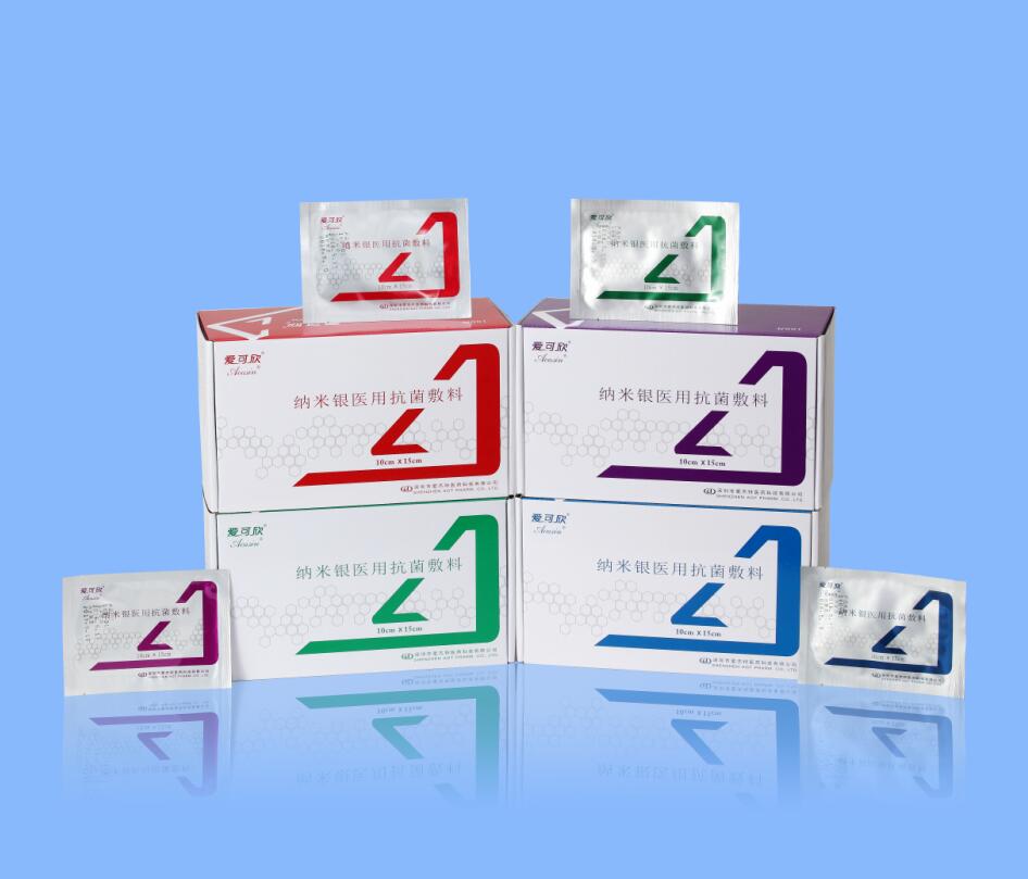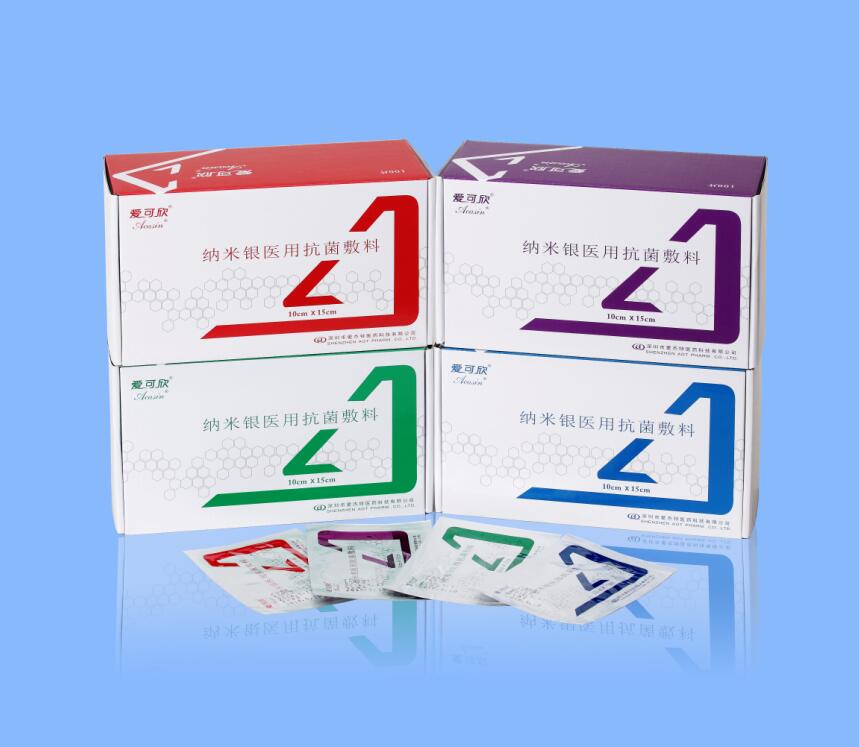 | 補充說明 | 納米銀醫(yī)用抗菌敷料(愛可欣®敷料)是愛杰特公司利用粒徑4~8nm的納米銀原料,開發(fā)的用于治療**感染性傷口的新型抗菌敷料,與傷口接觸后,迅速并持久地釋放納米銀粒子,快速有效地殺滅侵入傷口的**病原體,并可消炎止痛,促進傷口愈合。 |