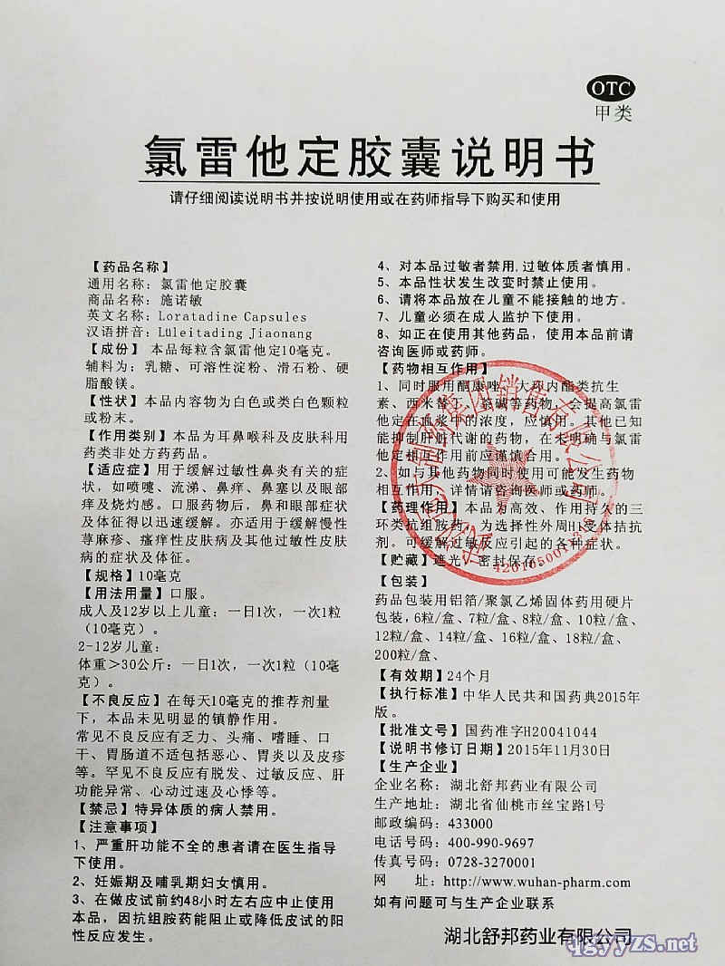 | 用法用量 | 口服。成人及12歲以上兒童:一日1次,一次1粒(10毫克)。2-12歲兒童:體重>30公斤:一日1次,一次1粒(10毫克)。 |