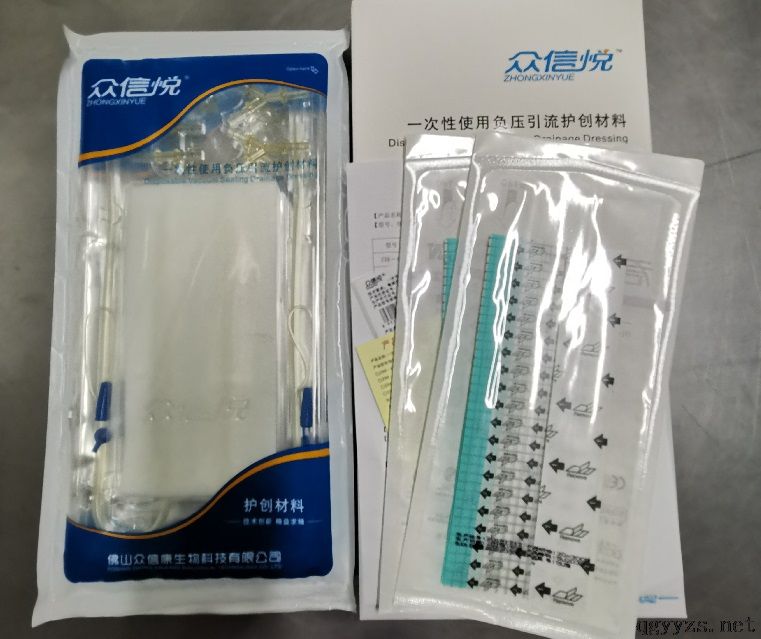 | 補(bǔ)充說明 | 我公司生產(chǎn)的VSD負(fù)壓引流護(hù)創(chuàng)材料用醫(yī)用泡沫海綿包裹引流管,使泡沫材料成為引流管和被引流腔隙或創(chuàng)面間的中介,引流管外接沖洗管路,再利用具有生物閥功能的半透性粘貼薄膜封閉被引流區(qū),使之與外界隔絕,接通高負(fù)電源,形成一個(gè)高效引流系統(tǒng)。我們的VSD負(fù)壓引流護(hù)創(chuàng)材料能及時(shí)清理被引流區(qū)的滲出物,且可以5-8天換一次藥,具有創(chuàng)面愈合快、感染率低、更換敷料次數(shù)少、抗菌藥物使用少、降低醫(yī)藥費(fèi)用等特點(diǎn),能使急性創(chuàng)傷的愈合時(shí)間加快60%以上,慢性創(chuàng)面的愈合速度時(shí)間加快2—3倍,總體降低了患者的醫(yī)療費(fèi)用。 |