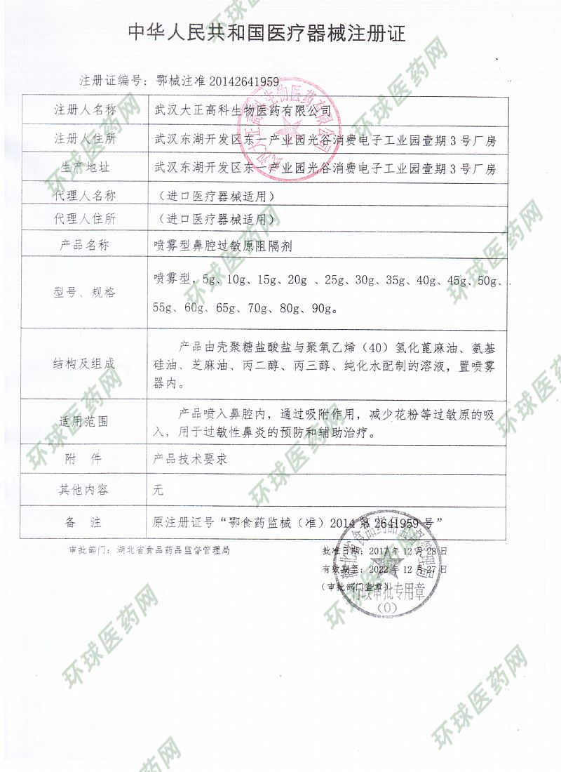 | 其它說明 | 產(chǎn)品賣點 1.過敏原阻隔劑全國**; 2.靜電吸附,無藥物副反應; 3.阻隔+修復+滋潤+沖洗; 4.預防與治療相結合; 5.適用范圍廣,適用人群多; 6.依從性好,可長期使用. |