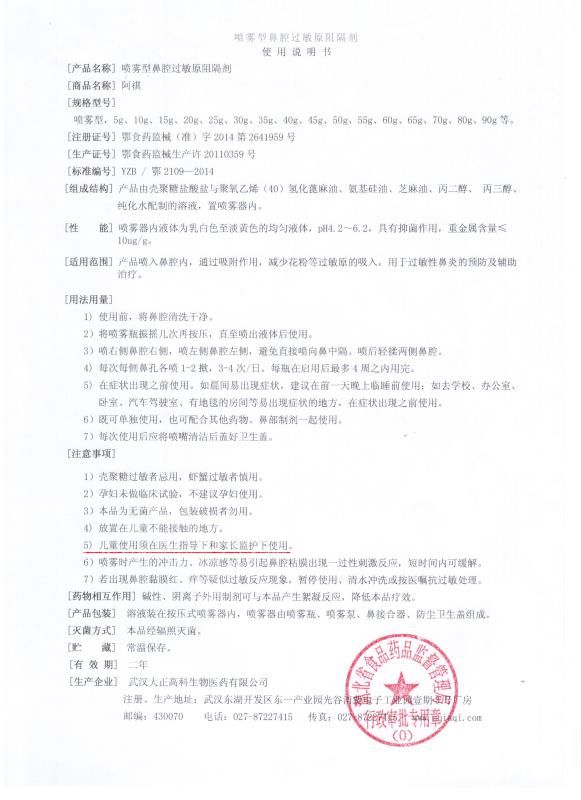 產(chǎn)品名稱: 阿祺噴霧型鼻腔過敏阻隔劑
