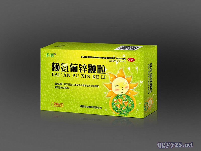 | 補充說明 | 用于防治小兒及青少年因缺乏賴氨酸和鋅而引起的疾病。賴氨葡鋅顆粒所含賴氨酸是維持人體氮平衡的必須氨基酸之一,具有促進人體生長的作用;鋅為體內(nèi)多種酶的重要組成成份,具有促進生長發(fā)育、改善味覺的作用。 1、促進小兒身高增長發(fā)育; 2、增強食欲,改善厭食、異食癥; 3、提高機體免疫力。 |