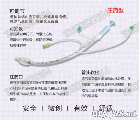 | 補充說明 | 同時集可調(diào)節(jié)、可抽吸、注藥口、管頭軟化等功能于一身的發(fā)明專利產(chǎn)品 可調(diào)節(jié):可調(diào)節(jié)前端曲度設(shè)計可根據(jù)患者喉咽部的情況,通過控制調(diào)節(jié)導(dǎo)桿來調(diào)整管體插入方向,快速準確插管,減少氣道創(chuàng)傷,杜絕交叉感染。 可抽吸:抽液孔與抽液管連通抽液管末端有接頭,可與注射器或負壓裝置連接,定期對聲門下、氣囊上方的滯留物進行沖洗,并抽吸滯留物。可有效預(yù)防控制和減少呼吸機相關(guān)性肺炎的發(fā)生。 注藥口:麻醉藥物、消炎藥物或清洗液通過球囊上方的注藥孔,作用于氣道黏膜,氣道減少患者嗆咳、惡性嘔吐等不適反應(yīng)及感染幾率。 管頭軟化:經(jīng)特殊工藝處理,導(dǎo)管前端硬度有別于導(dǎo)管管體。柔化處理的導(dǎo)管前端在插管過程中,能大大減少對氣道管壁黏膜的損傷。 |