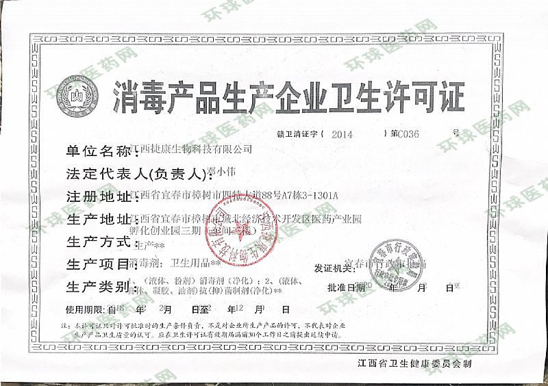 生產(chǎn)企業(yè): 江西捷康生物科技有限公司