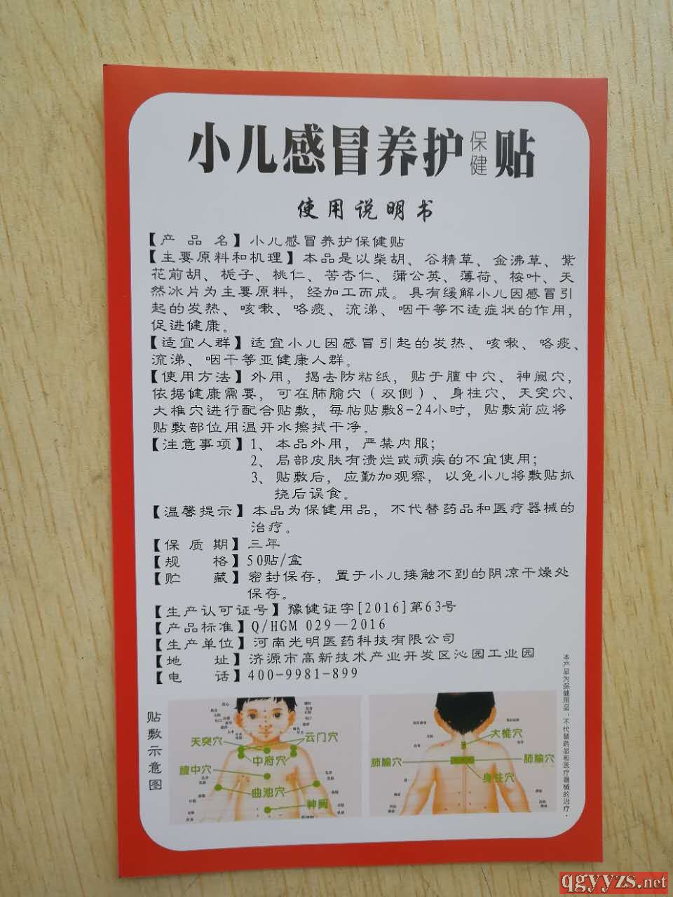 產品名稱: 小兒感冒養(yǎng)護保健貼