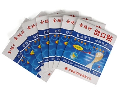 | 主要成分 | 由粘貼膠帶,滲血層和格力層組成。粘貼膠帶采用平布、彈性氨綸、彈性PE、PE、PU、PVC或無紡布材料;隔離層采用白板紙材料或塑料膜;滲血層采用棉性無紡布材料。 |