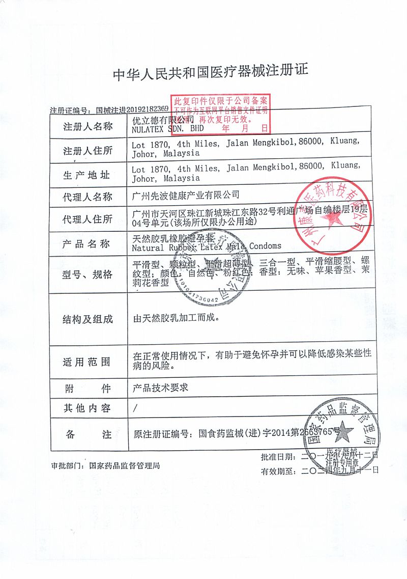 生產(chǎn)企業(yè): 馬來(lái)西亞優(yōu)立德有限公司