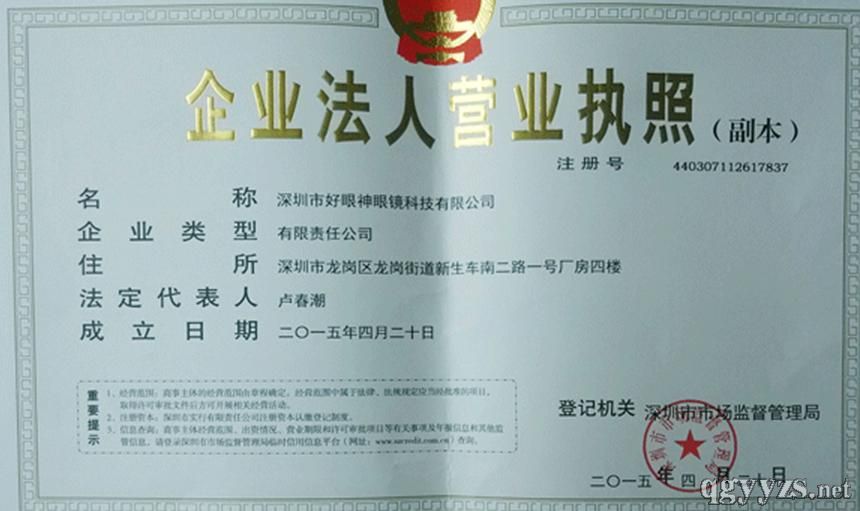 生產(chǎn)企業(yè): 深圳市好眼神眼鏡有限公司