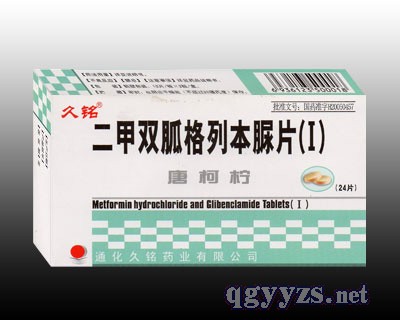| 主要成分 | 本品為復(fù)方制劑,其組分為:每片含鹽酸二甲雙胍250mg,格列本脲1.25mg。 |