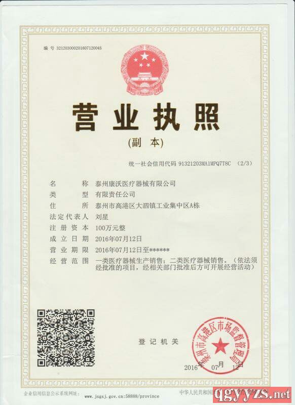 招商企業(yè): 泰州康沃醫(yī)療器械有限公司