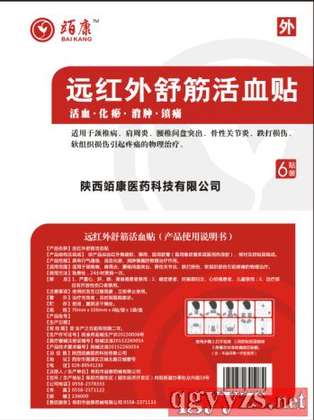 | 產(chǎn)品用途 | 遠(yuǎn)紅外舒筋活血貼適用于頸椎病、肩周炎、腰椎間盤(pán)突出、骨性關(guān)節(jié)炎、跌打損傷、軟組織損傷引起疼痛的物理治療。 |