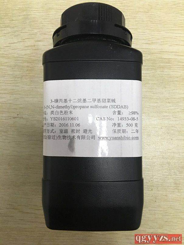 | 補(bǔ)充說明 | 3-磺丙基十二烷基二甲基甜菜堿 英文名: 3-Sulfopropyl dodecyl dimethyl amm0nium betaine (SDDAB) 外觀:白色結(jié)晶粉末 含量:≥99* 分子式:C17H37NO3S 分子量:335.6 CAS No.:14933-08-5 熔點(diǎn):244℃ 存儲(chǔ):-20℃冷藏 編號(hào):DYS008 |
