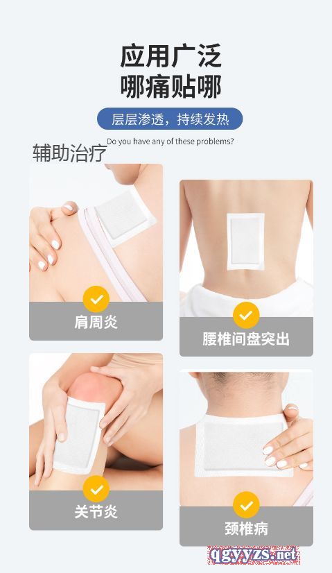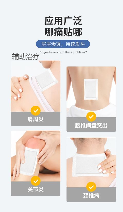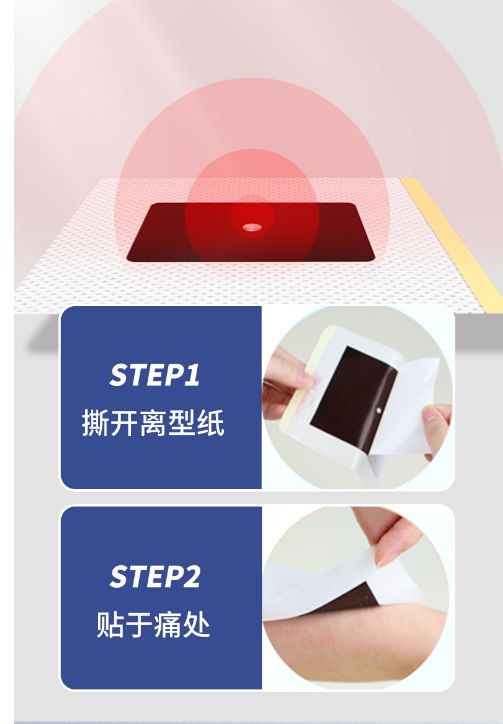 | 使用方法 | 清潔患處,確認(rèn)包裝無(wú)破損后,打開(kāi)包裝,取出遠(yuǎn)紅外磁療貼,將貼劑的隔離膜撕去,貼于患處,每24小時(shí)更換一次 |