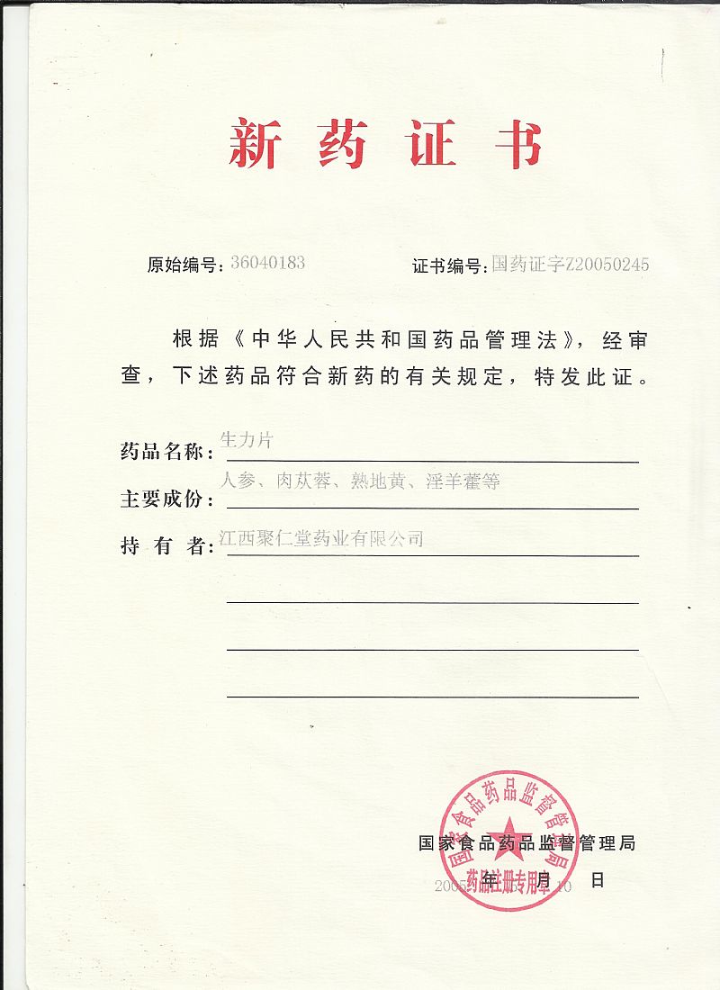 | 產品賣點 | (1)中華人民共和國產品。 (2)中華人民共和國專利產品。 (3)有國藥證字Z20050245號新藥證書。 (4)中藥制劑。 (5)能夠提高免疫功能、減少感冒、安神 益智的補腎壯陽藥。主治陽瘺、早泄、 遺精、性欲減退等。 (6)只做終端,實行區(qū)域保護、價格維護。 (7)**空間大,長期合作,互利共贏。 (8)獲2005年江西省新產品證書。 |