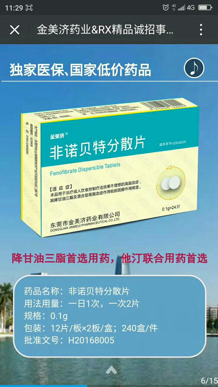 通用名稱:非諾貝特分散片