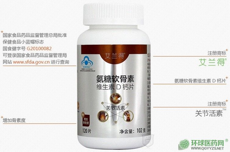 | 補(bǔ)充說明 | 本品是以氨基葡萄糖鹽酸鹽、硫酸軟骨素、碳酸鈣、維生素D3、微晶纖維素、羧甲淀粉鈉、羧甲基纖維素鈉、二氧化硅、硬脂酸鎂、聚乙烯醇、滑石粉、聚乙二醇、二氧化鈦、卵磷脂為主要原料制成的保健食品,經(jīng)動(dòng)物功能試驗(yàn)證明,具有增加骨密度的保健功能。 【功效成分及含量】每100g含:氨基葡萄糖鹽酸鹽 29.41g、硫酸軟骨素 23.53g、鈣 11.76g、維生素D3 97.65μg 【保健功能】增加骨密度 【適宜人群】中老年人 【不適宜人群】少年兒童、孕婦 【服用方法及食用量】每日3次,每次2片,吞食 【產(chǎn)品規(guī)格】0.85g/片 【保質(zhì)期】24個(gè)月 【貯藏方法】密封,避光,置陰涼干燥處 【注意事項(xiàng)】本產(chǎn)品不能代替藥物;本品添加了營養(yǎng)素,與同類營養(yǎng)素同時(shí)食用不宜超過**量 |